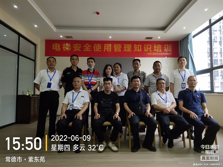 2022年6月9日下午三点,公司组织各项目负责人及项目相关技术人员在紫东苑小区参加电梯安全使用管理知识培训。